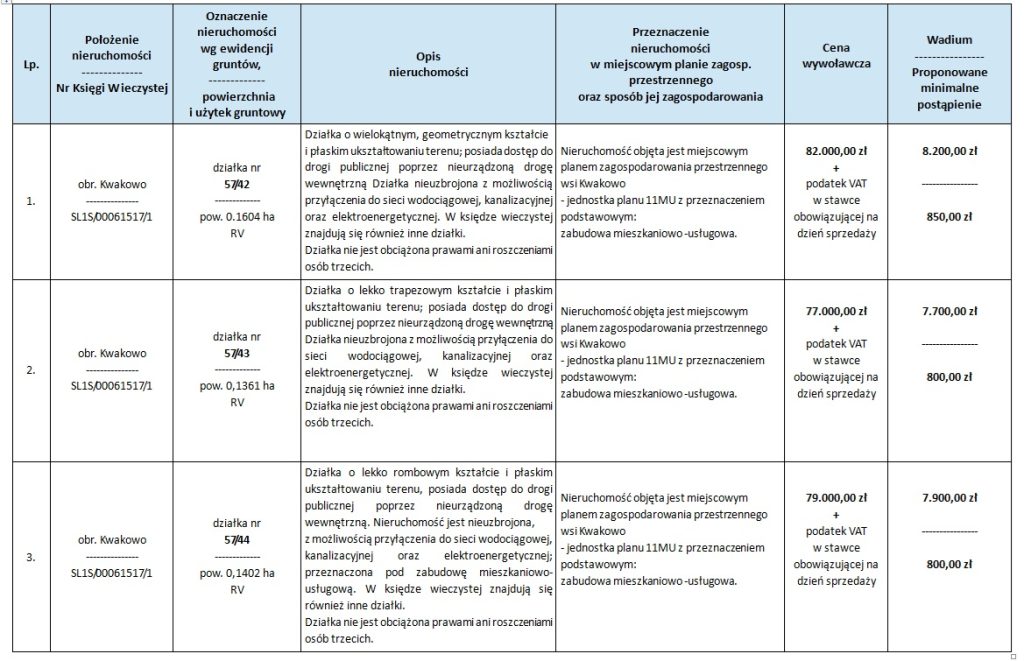 - działka nr 57/42 – 18 lutego 2026 r. godz. 10.00