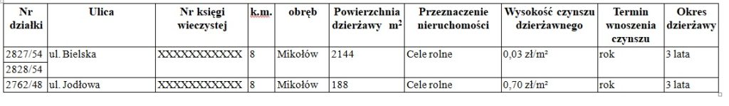 Burmistrz Mikołowa podaje do wiadomości, że zostały przeznaczone do dzierżawy następujące nieruchomości gminne: