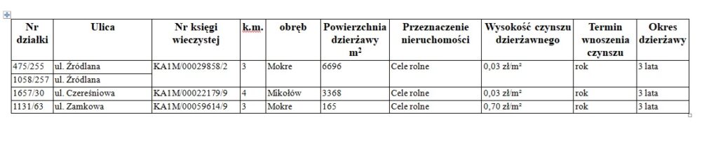 Na podstawie art. 35 ustawy z dnia 21 sierpnia 1997 roku o gospodarce nieruchomościami (Dz. U. 2024, poz. 1145) Burmistrz Mikołowa podaje do wiadomości, że zostały przeznaczone do dzierżawy następujące nieruchomości gminne: