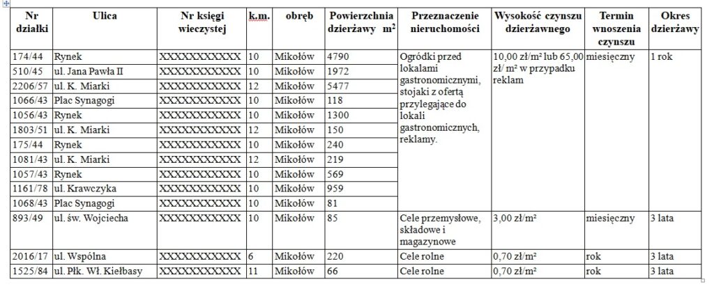 Burmistrz Mikołowa podaje do wiadomości, że zostały przeznaczone do dzierżawy następujące nieruchomości gminne: