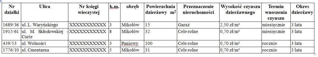 Burmistrz Mikołowa podaje do wiadomości, że zostały przeznaczone do dzierżawy następujące nieruchomości gminne: