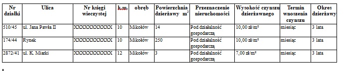 Burmistrz Mikołowa podaje do wiadomości, że zostały przeznaczone do dzierżawy następujące nieruchomości gminne:
