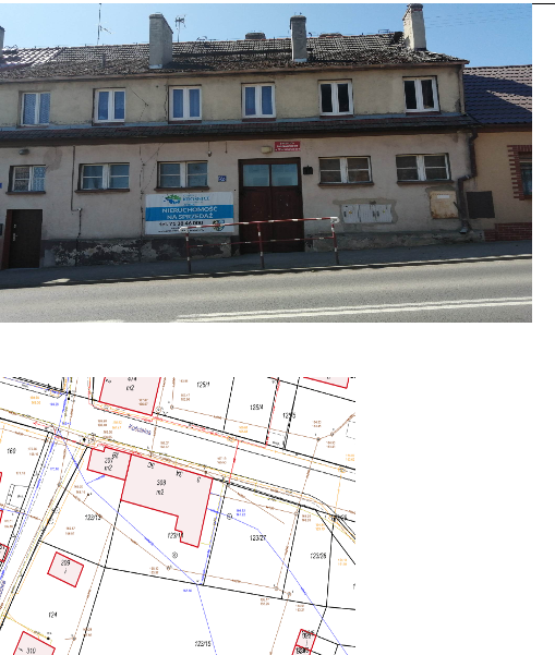 | Lokalizacja i opis nieruchomości | Nieruchomość lokalowa – lokal niemieszkalny nr 96 w budynku przy ulicy Kościelnej 3A w Wierzchowicach – położony jest na parterze dwukondygnacyjnego, podpiwniczonego, wielolokalowego budynku, wzniesiony w czasach powojennych, w technologii tradycyjnej dla tego okresu tj. murowanej z cegły – wcześnie pełniący funkcję świetlicy wiejskiej. Przedmiotowa nieruchomość położona jest w centralnych rejonach obrębu wsi Wierzchowice, w sąsiedztwie istniejącej, średniej intensywności zabudowy mieszkaniowej jednorodzinnej i wielorodzinnej oraz w bezpośrednim sąsiedztwie głównego traktu komunikacyjnego obrębu – drogi krajowej nr 448 (Milicz-Syców). Działka położona jest bezpośrednio przy drodze o nawierzchni asfaltowej z obustronnym chodnikiem z kostki bitumicznej. Działka gruntu posiada kształt regularny, w rzucie zbliżony do prostokąta, w północnej części zabudowana budynkiem mieszkalnym wielokanałowym z przedmiotowym lokalem, brak dodatkowej zabudowy w obrębie działki. Pozostała część działki zagospodarowana jest jako zieleń i miejsca postojowe. Grunt posiada pełne uzbrojenie w media: sieć wodociągowa, kanalizacji sanitarnej, elektroenergetyczna i gazowa. Działka posiada dostęp do drogi publicznej. Teren działki częściowo ogrodzony. Budynek został zrealizowany w technologii tradycyjnej. Fundamenty murowane, ściany wykonane jako konstrukcja murowana, z cegły pełnej. Elewację budynku stanowi tynk wapienny, budynek nie jest ocieplony. Budynek oraz odpowiednio lokale posiadają instalacje: wodno-kanalizacyjną, elektryczną, gazową oraz centralnego ogrzewania, indywidualną dla każdego z lokali. Budynek jest zabytkiem. Skład lokalu: L.p. Nazwa pomieszczenia Powierzchnia użytkowa 1. sala główna 105,65 m2 2. szatnia 6,59 m2 3. szatnia 4,14 m2 4. pomieszczenie pomocnicze 4,67 m2 5. kuchnia 9,77 m2 6. WC 2,63 m2 7. WC 2,60 m2 8. komunikacja 12,98 m2 9. przedsionek 3,37 m2 Powierzchnia 152,40 m2 Brak pomieszczeń przynależnych. Pomiarów powierzchni dokonano za pomocą dalmierza laserowego wedle obowiązujących norm. Udział w prawie współwłasności do nieruchomości wspólnej, tj. gruntu oraz części wspólnych budynku i urządzeń, nie służących do wyłącznego użytku właścicieli wyodrębnionych lokali, wynosi: 386/1000. Lokal posiada własne odrębne wejście bezpośrednio od strony ulicy Kościelnej oraz wyjście od strony podwórza za budynkiem. Lokal dwustronny – okna zapewniają widok w kierunku ulicy oraz podwórza. W ocenie biegłego układ funkcjonalny lokalu jest korzystny. Lokal znajduje się w stanie wykończonym. Podłoża pod posadzki w lokalu wykonane są wylewki betonowej, na której ułożone zostały płytki terrakota oraz parkiet (sala główna), ściany i sufity pomieszczeń są otynkowane, malowane, z lamperią i boazerią, a w sanitariatach i pomieszczeniu kuchennym w pasie technologicznym oblicowane płytkami glazurowanymi. Stolarkę okienną stanowią okna drewniane skrzynkowe podwójne z parapetami drewnianymi, parapety zewnętrzne kamienne; stolarka drzwiowa – drzwi zewnętrzna dwuskrzydłowe drewniane, wewnętrzne płycinowe z przeszkleniami. W pomieszczeniach sanitarnych znajduje się umywalka oraz miska ustępowa wraz z armaturą sanitarną, w kuchni zlewozmywak. Ciepła woda użytkowa z przepływowych podgrzewaczy. Lokal posiada instalację centralnego ogrzewania – grzejniki stalowe. Ponadto lokal wyposażony jest w instalację elektryczną (oświetleniową i gniazd wtykowych), wodną (przyłącze do sieci), kanalizacyjną (przyłącze do sieci) i wentylacyjną (grawitacyjna). Budynek zlokalizowany na działce ujęty jest w gminnej ewidencji zabytków nieruchomych. |