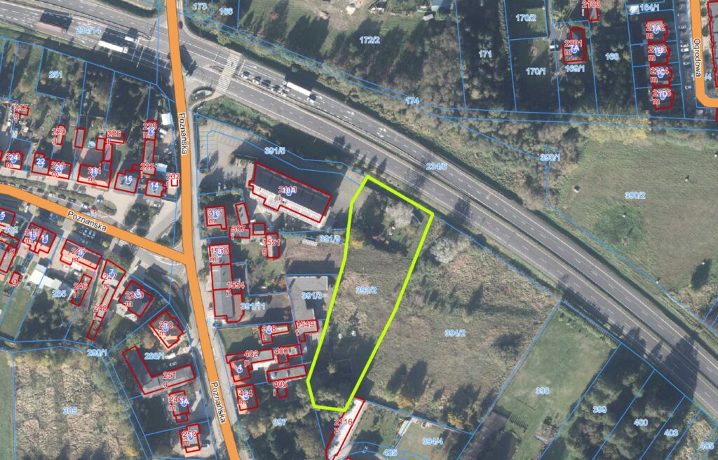 Opis nieruchomości | Przedmiotowa działka ewidencyjna położona jest w sąsiedztwie terenów produkcyjno-usługowych oraz terenów mieszkaniowo-usługowych i zabudowy zagrodowej. Zgodnie z zapisami ewidencji gruntów i budynków stanowi ona klasoużytki: 0,0322 ha – łąki trwałe (ŁV), 0,0648 ha – grunty orne (RV), 0,3328 ha – grunty orne (RVI). Działka posiada kształt nieregularny, figury wielościennej. Działka ewidencyjna nr 393/2 położona jest przy drodze krajowej nr 92 (od strony północnej), jednakże jak wynika z informacji od Generalnej Dyrekcji Dróg Krajowych i Autostrad Oddziału w Poznaniu, brak jest możliwości usytuowania bezpośredniego zjazdu z tej drogi (na przedmiotowym odcinku drogi dwujezdniowej występuje bardzo duże natężenie ruchu, co powoduje, że ze względów na konieczność zachowania bezpieczeństwa ruchu drogowego, należy odmówić lokalizacji zjazdu). Z uwagi na położenie, przeznaczenie oraz brak bezpośredniego dostępu do drogi publicznej, przedmiotowa działka ewidencyjna nie może być wykorzystana i zagospodarowana jako odrębna i samodzielna nieruchomość. Z uwagi na powyższe zasadna jest sprzedaż w drodze przetargu ustnego ograniczonego (na rzecz właścicieli nieruchomości sąsiadujących z przedmiotową nieruchomością, którzy nie zalegają z zapłatą z tytułu bezumownego korzystania z części przedmiotowej nieruchomości). |