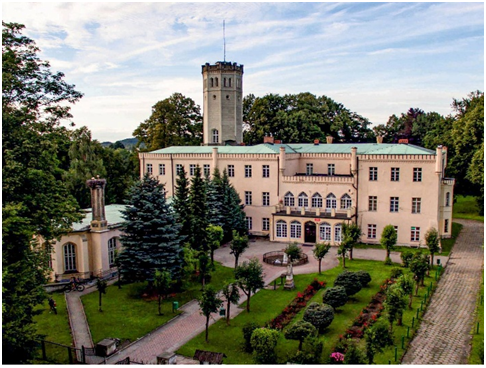| Nieruchomość gruntowa zabudowana, oznaczona ewidencyjnie jako działka nr 608, obręb 0009 Mysłakowice, o powierzchni 2,1234 ha, położona w Mysłakowicach przy ul. Sułkowskiego 1. Działka zabudowana jest budynkiem pałacowym wzniesionym w zabudowie wolnostojącej o powierzchni użytkowej 3.363,04 m2 (budynek wpisany do rejestru zabytków decyzją A/5685/639/J z dnia 13.05.1980 r., aktualnie budynek nieużytkowany, do 2024 r. budynek użytkowany był jako szkoła podstawowa). Działka zagospodarowana: dwa boiska sportowe o nawierzchni trawiastej i asfaltowej, elementy małej architektury, teren zieleni oraz utwardzone alejki – dojścia piesze i dojazdy. W sąsiedztwie budynku znajduje się park pałacowy wpisany do rejestru zabytków decyzją nr A/5374/508/J z dnia 07.12.1977 r. Działka posiada bezpośredni dostęp do drogi publicznej – nieruchomość położona jest przy skrzyżowaniu ulicy 1 Maja z ulicą Sułkowskiego (drogi dwukierunkowe o znaczeniu lokalnym). Teren działki ogrodzony. Wyposażenie w urządzenia infrastruktury technicznej: sieć wodociągowa, sieć kanalizacyjna, sieć gazowa, sieć energetyczna, sieć teletechniczna. | |