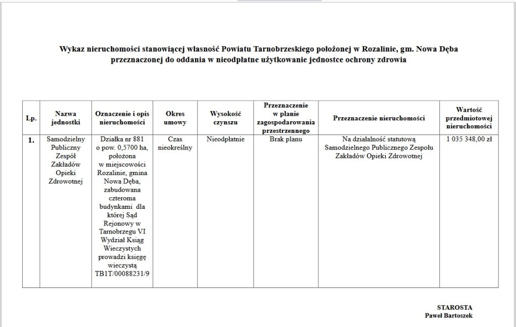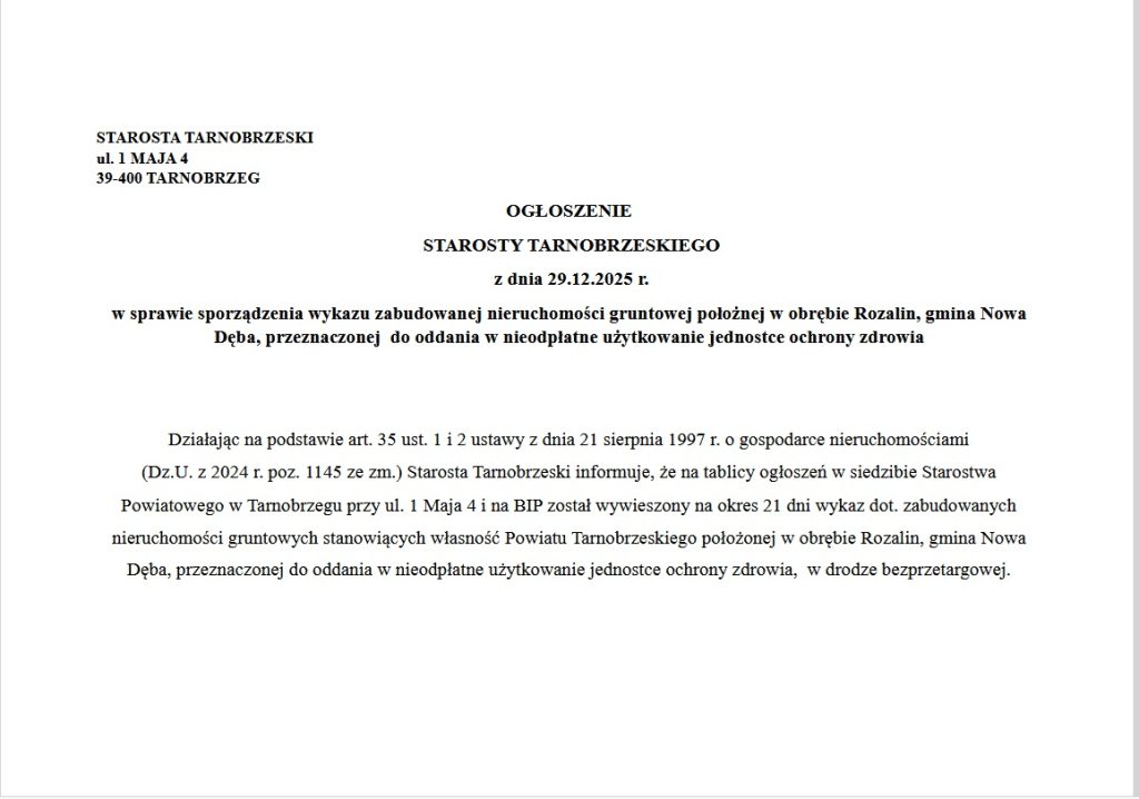 O G Ł O S Z E N I E w sprawie podania do publicznej wiadomości informacji o wykazie nieruchomości Skarbu Państwa przeznaczonej do oddania w dzierżawę