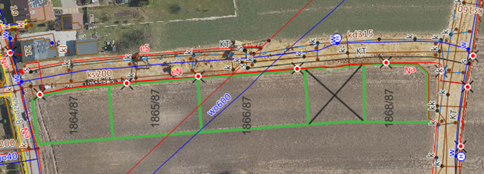 | Część nieruchomości składająca się z 4 działek o kształtach zbliżonych do prostokąta, niezagospodarowana, nieogrodzona. W sąsiedztwie nieruchomości występuje zabudowa mieszkaniowa jednorodzinna i tereny niezagospodarowane przeznaczone pod zabudowę jednorodzinną. Przez działkę nr 1865/87 i 1866/87 przebiega sieć wodociągowa oraz sieć energii elektrycznej. Strefy ochronne od sieci i ich szerokość ustalają ich właściciele lub dysponenci. Nieruchomości są dobrze skomunikowane z centrum miasta. Dojazd do nieruchomości odbywa się drogą o nawierzchni asfaltowej. Działki położone są bezpośrednio przy drodze publicznej. Nieruchomość położona jest w granicach obszaru oddziaływania lotniska Gotartowice. Działy III i IV księgi wieczystej nie zawierają wpisów i obciążeń. | ||||