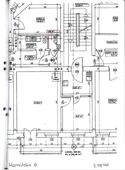 w tym: powierzchnia przynależnego wc (na II piętrze) – 1,35 m2