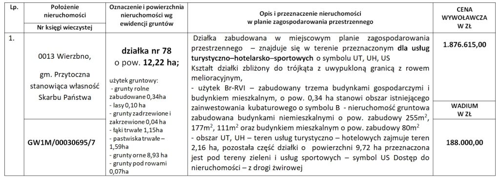 – znany jest mu przedmiot przetargu i przyjmuje go bez zastrzeżeń oraz nie wnosi żadnych zastrzeżeń co do wyglądu i stanu zagospodarowania nieruchomości,