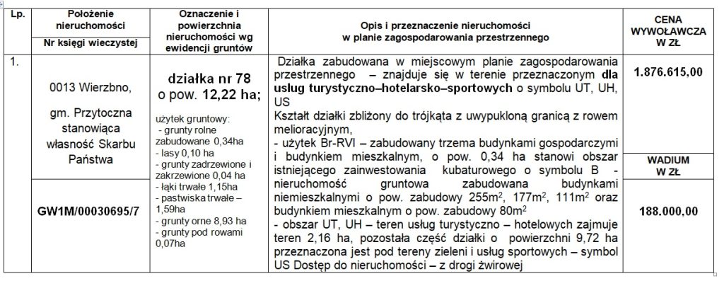– znany jest mu przedmiot przetargu i przyjmuje go bez zastrzeżeń oraz nie wnosi żadnych zastrzeżeń co do wyglądu i stanu zagospodarowania nieruchomości,