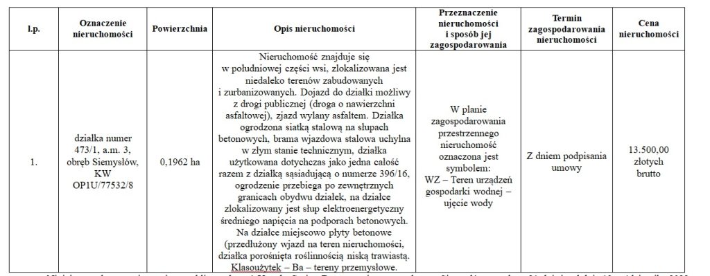 Szczegółowych informacji o nieruchomości można uzyskać w Urzędzie Gminy w Domaszowicach pok. Nr 10.