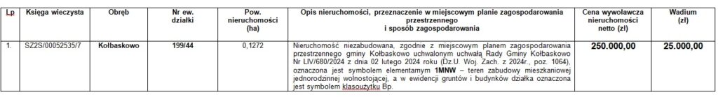 Przetarg odbędzie się w świetlicy gminnej w Kołbaskowie – Kołbaskowo nr 87 w dniu 19.12.2025r. o godz. 9:00.