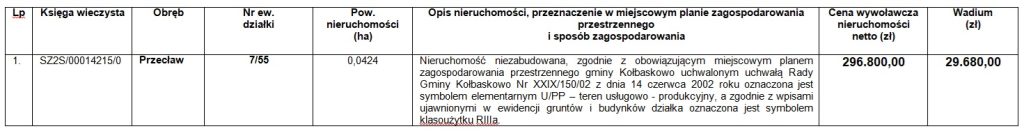 15. Przed przystąpieniem do przetargu można zapoznać się z dokumentacją dotyczącą nieruchomości. Nieruchomość można oglądać w miejscu lokalizacji po uprzednim umówieniu się z przedstawicielem sprzedającego. Dodatkowe informacje można uzyskać w Referacie Gospodarki Nieruchomościami i Planowania Przestrzennego Urzędu Gminy w Kołbaskowie w godzinach pracy urzędu(tel.: 91 88 49 035, e-mail: lipinska@kolbaskowo.pl). Ogłoszenie wywiesza się na okres 30 dni, licząc od dnia 27.02.2026r. Wójt Gminy Kołbaskowo zastrzega sobie prawo odwołania przetargu lub jego unieważnienia w przypadku zaistnienia okoliczności uzasadnionych przyczyn.