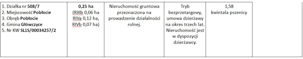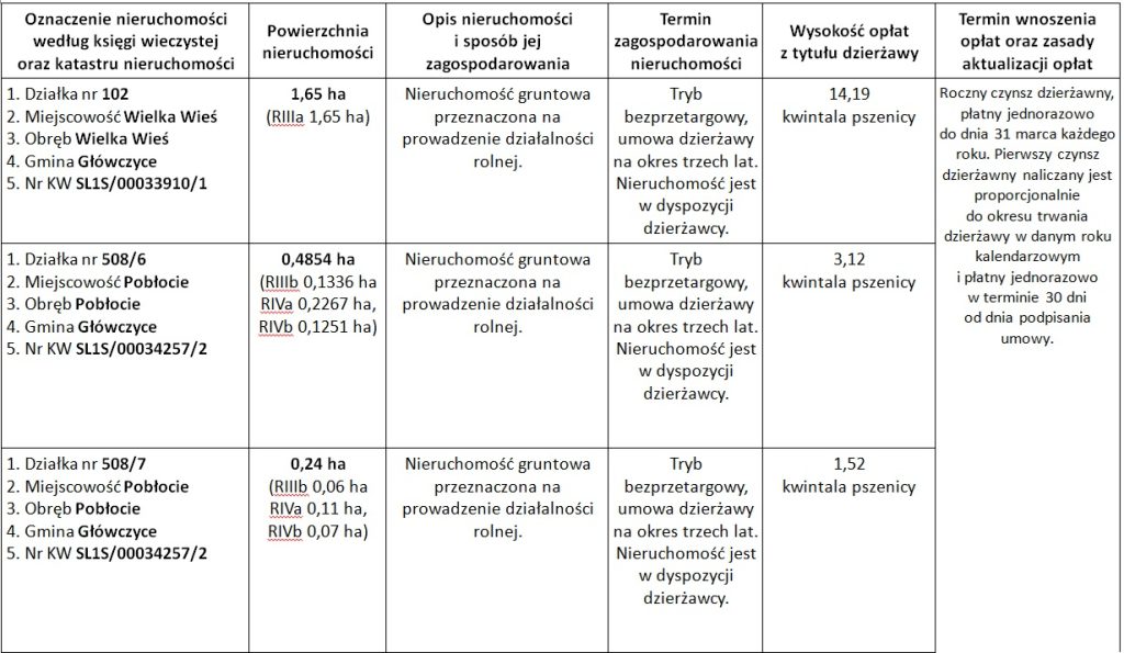 Wykaz nieruchomości stanowiących własność Gminy Główczyce przeznaczonych do dzierżawy