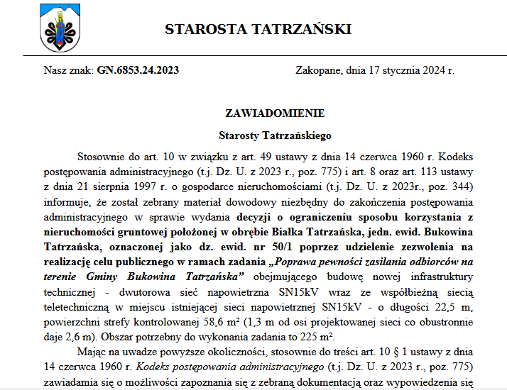 instytucja: Starostwo Powiatowe w Zakopanem