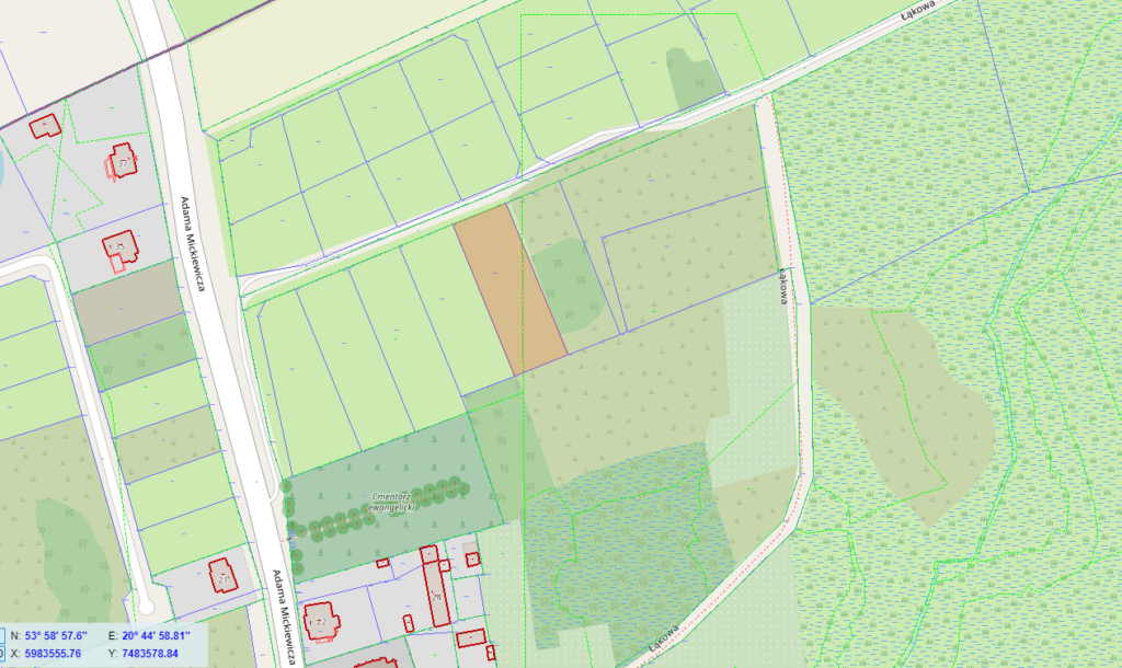 Zgodnie z miejscowym planem zagospodarowania przestrzennego miasta Jeziorany dla terenu położonego w rejonie ul. Mickiewicza i ul. Łąkowej uchwalonym Uchwałą Nr XXV/218/21 Rady Miejskiej w Jezioranach z dnia