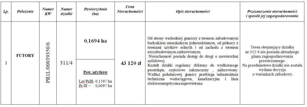 Burmistrz Miasta i Gminy Oleszyce podaje do publicznej wiadomości wykaz nieruchomości przeznaczonej do sprzedaży