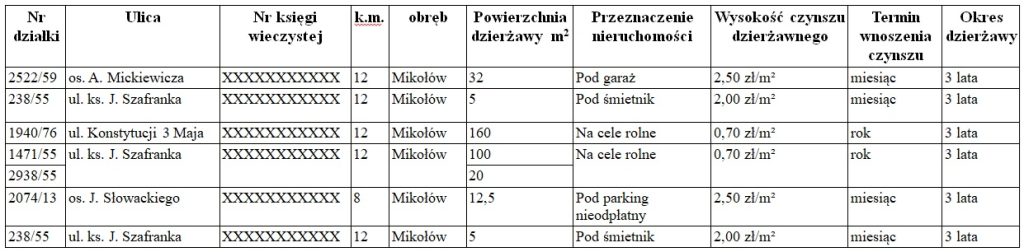 Burmistrz Mikołowa podaje do wiadomości, że zostały przeznaczone do dzierżawy następujące nieruchomości gminne: