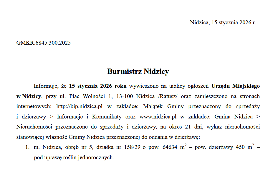 Ogłoszenie o ponownym wyłożeniu do publicznego wglądu części projektu miejscowego planu zagospodarowania przestrzennego fragmentu miasta Mikołów dla obszaru Mokre – etap I, w rejonie ulic Sosnowej, Kolonia Huty, Grudniowej i Wojska Polskiego, pomiędzy potokiem Jasienica i granicą miasta