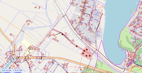 W działkach nr 54/14, 54/5 zlokalizowany jest wodociąg z przyłączami. Przez działki nr 56/4, 56/1, 54/14, 54/5 przebiega sieci kanalizacyjna z przyłączami (sieć tłoczna i grawitacyjna). Na działce nr 56/4 poza siecią zlokalizowana jest studnia odpowietrzająca. Z uwagi na zlokalizowane kanalizacji i przyłączy Kandydat na nabywcę nieruchomości zobowiązany będzie do wyrażenia zgody na ustanowienie nieodpłatnej służebności przesyłu na czas nieokreślony na działkach polegającej na każdorazowym udostępnieniu działek w celu przeprowadzenia konserwacji, remontów, usuwania awarii, wymiany, modernizacji i innych czynności eksploatacyjnych na rzecz Gminy Pasym. Zgoda będzie dot. również prawa wejścia i wjazdu na teren odpowiednim sprzętem przez wszystkie podmioty i osoby, którymi Gmina Pasym posługuje się w związku z utrzymaniem sieci. Służebność zostanie wpisana w księdze wieczystej przy sprzedaży działki nr 56/4 oraz udziałów w działce nr 56/1.