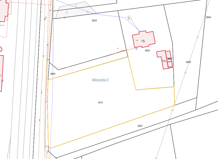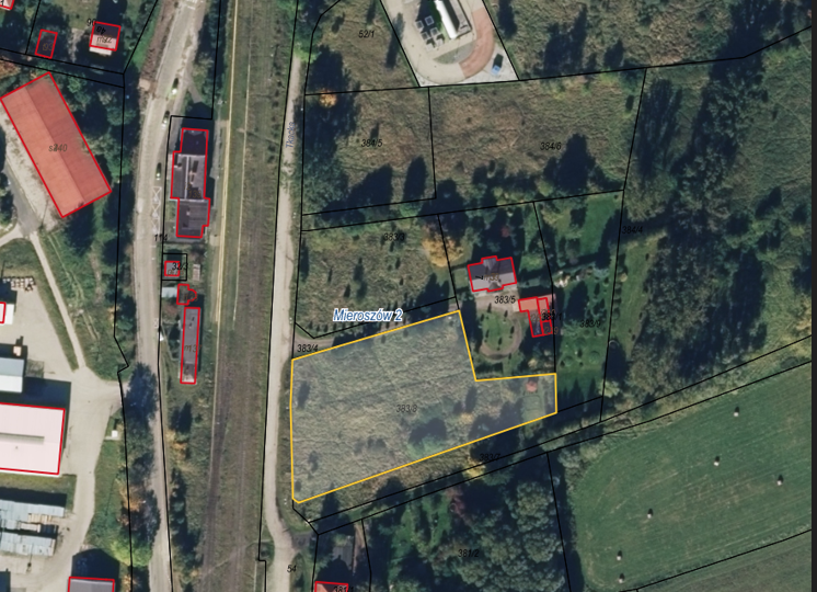 Nieruchomość gruntowa niezabudowana o powierzchni 0,4212 ha, położona przy ul. Tkackiej w obrębie Mieroszów 2. Działka nr 383/8 jest niezabudowana i stanowi od kilku lat nieużytkowany teren porośnięty trawami i chwastami oraz licznymi drzewami ozdobnymi (głównie iglakami). Działka ma kształt zbliżony do prostokąta i zachowaną proporcję długości boków, teren wypłaszczony. Wzdłuż zachodniej granicy działki przebiega sieć wodociągowa wD110. Nieruchomość położona w bezpośrednim sąsiedztwie terenów uzbrojonych (bez sieci gazowej), aktualnie działka nie jest uzbrojona. Nieruchomość zlokalizowana jest przy bocznej ulicy Tkackiej, w odległości około 350 m od głównej ulicy Wałbrzyskiej. Dojazd do nieruchomości wąską i zniszczoną ulicą Tkacką o nawierzchni brukowej.