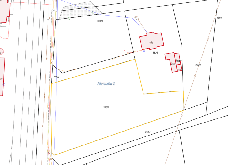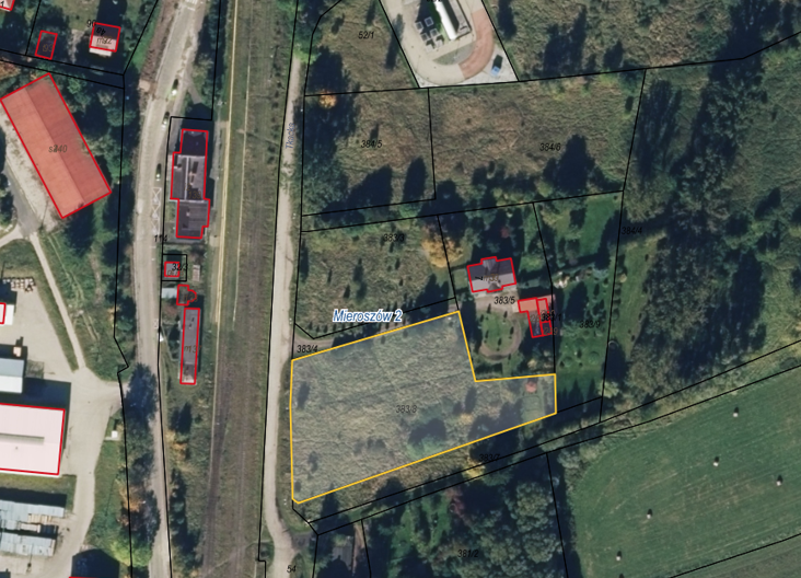 Nieruchomość gruntowa niezabudowana o powierzchni 0,4212 ha, położona przy ul. Tkackiej w obrębie Mieroszów 2. Działka nr 383/8 jest niezabudowana i stanowi od kilku lat nieużytkowany teren porośnięty trawami i chwastami oraz licznymi drzewami ozdobnymi (głównie iglakami). Działka ma kształt zbliżony do prostokąta i zachowaną proporcję długości boków, teren wypłaszczony. Wzdłuż zachodniej granicy działki przebiega sieć wodociągowa wD110. Nieruchomość położona w bezpośrednim sąsiedztwie terenów uzbrojonych (bez sieci gazowej), aktualnie działka nie jest uzbrojona. Nieruchomość zlokalizowana jest przy bocznej ulicy Tkackiej, w odległości około 350 m od głównej ulicy Wałbrzyskiej. Dojazd do nieruchomości wąską i zniszczoną ulicą Tkacką o nawierzchni brukowej.