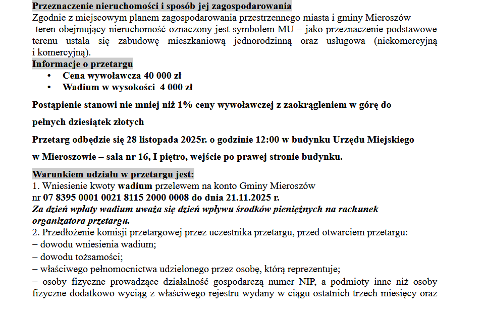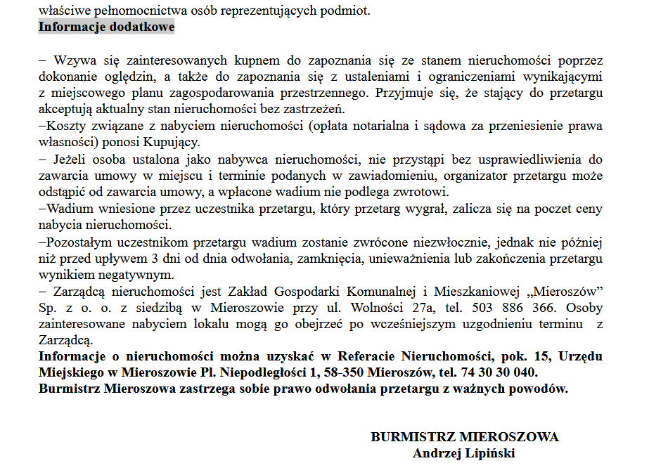 Burmistrz Zbąszynka podaje do publicznej wiadomości informację, że przeznacza do oddania w dzierżawę w trybie bezprzetargowym na rzecz dotychczasowego dzierżawcy