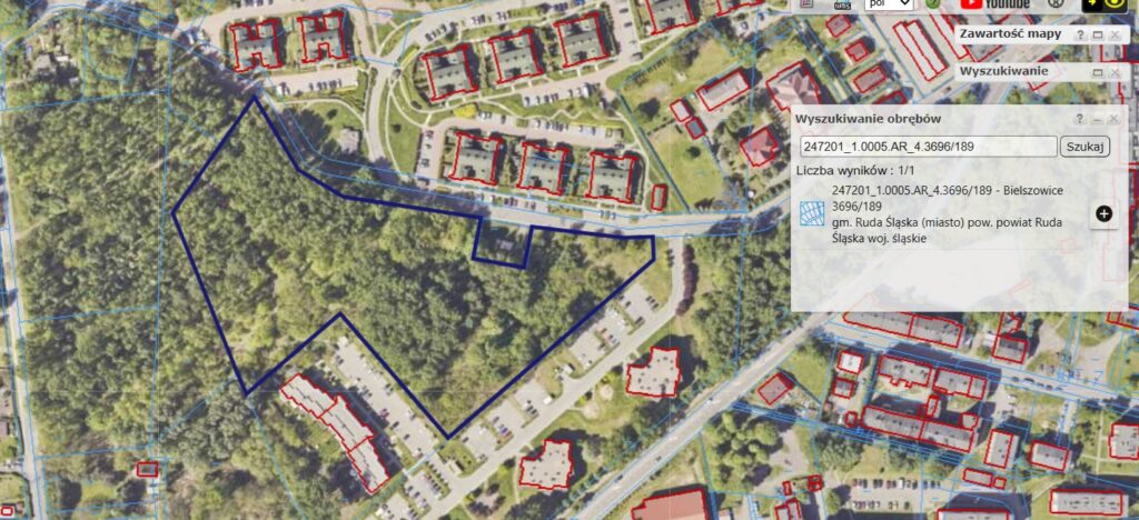 Działka nr 3696/189 o powierzchni 1.9927 ha, obręb nr 5, Bielszowice, użytek [Bp], stanowiąca własność Międzygminnego Towarzystwa Budownictwa Społecznego Sp. o.o., księga wieczysta nr GL1S/00020978/0 prowadzona przez Sąd Rejonowy w Rudzie Śląskiej.