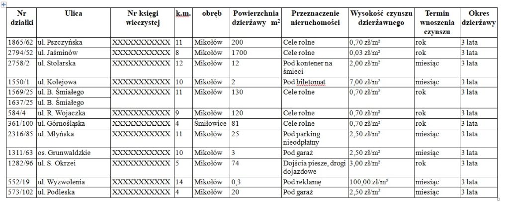 Burmistrz Mikołowa podaje do wiadomości, że zostały przeznaczone do dzierżawy następujące nieruchomości gminne: