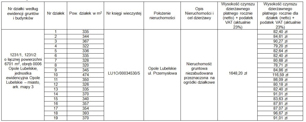 Osoby zainteresowane mogą składać wnioski na dzierżawę nieruchomości objętych niniejszym wykazem w terminie od dnia 10 lutego 2026 r. na Punkcie Obsługi Klienta (parter) Starostwa Powiatowego w Opolu Lubelskim przy ul. Lubelskiej 4.