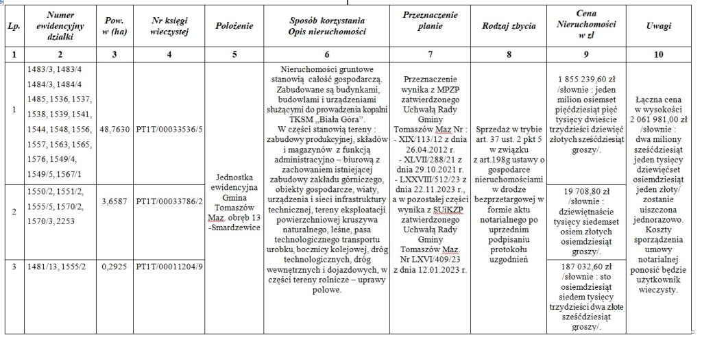 Ogłoszenie Starosty Tomaszowskiego z dnia 12 marca 2026 roku w sprawie wykazu nieruchomości przeznaczonych do sprzedaży w trybie bezprzetargowym