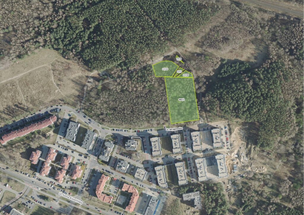 Teren przeznaczony do sprzedaży położony jest w Zielonej Górze przy ul. Mrągowskiej Osiedle Mazurskie we wschodniej części miasta za trasą S3, na północ od Szosy Kisielińskiej.