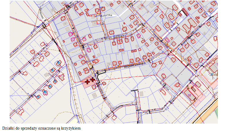 Działki do sprzedaży oznaczone są krzyżykiem