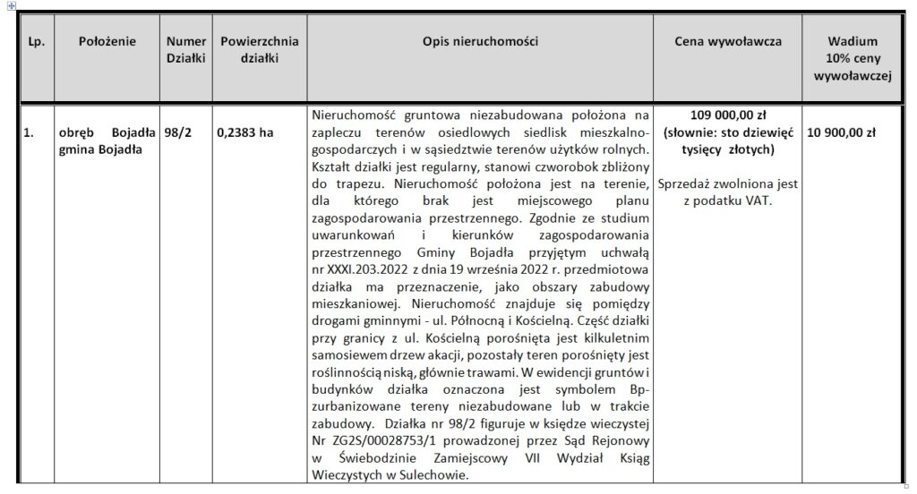 • znany jest mu przedmiot przetargu i przyjmuje go bez zastrzeżeń oraz nie wnosi jakichkolwiek zastrzeżeń, co do wyglądu i stanu zagospodarowania przedmiotowej nieruchomości,