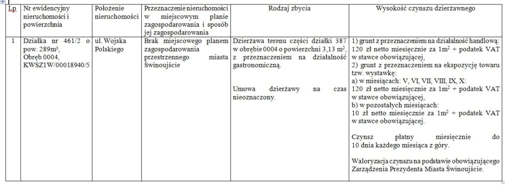 Na podstawie art. 35 ustawy z dnia 21 sierpnia 1997r. o gospodarce nieruchomościami (Dz. U. z 2024r., poz. 1145 ze zm.) przeznacza się do wydzierżawienia następujące nieruchomości z zasobu Gminy Miasto Świnoujście:
