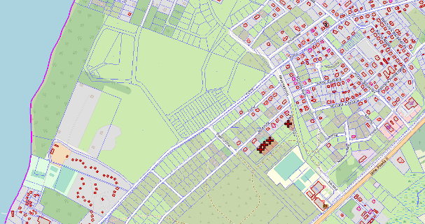 Działki do sprzedaży oznaczone są krzyżykiem