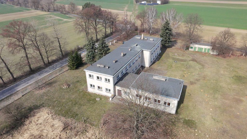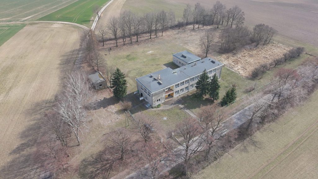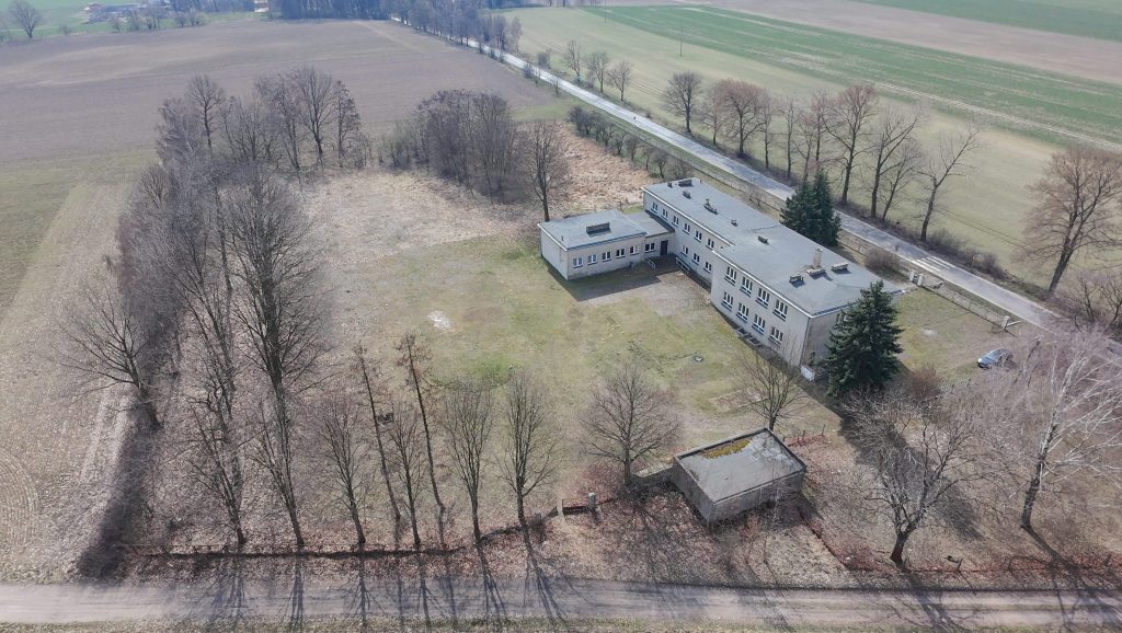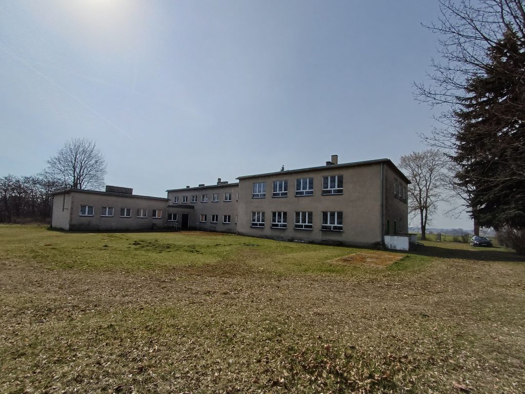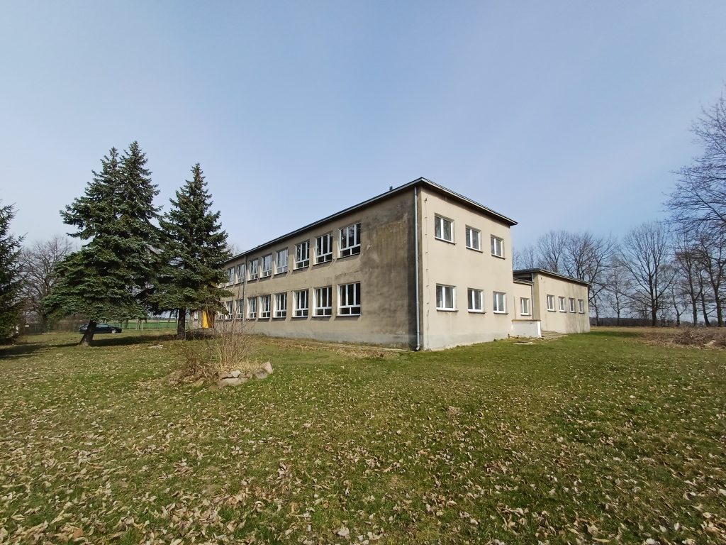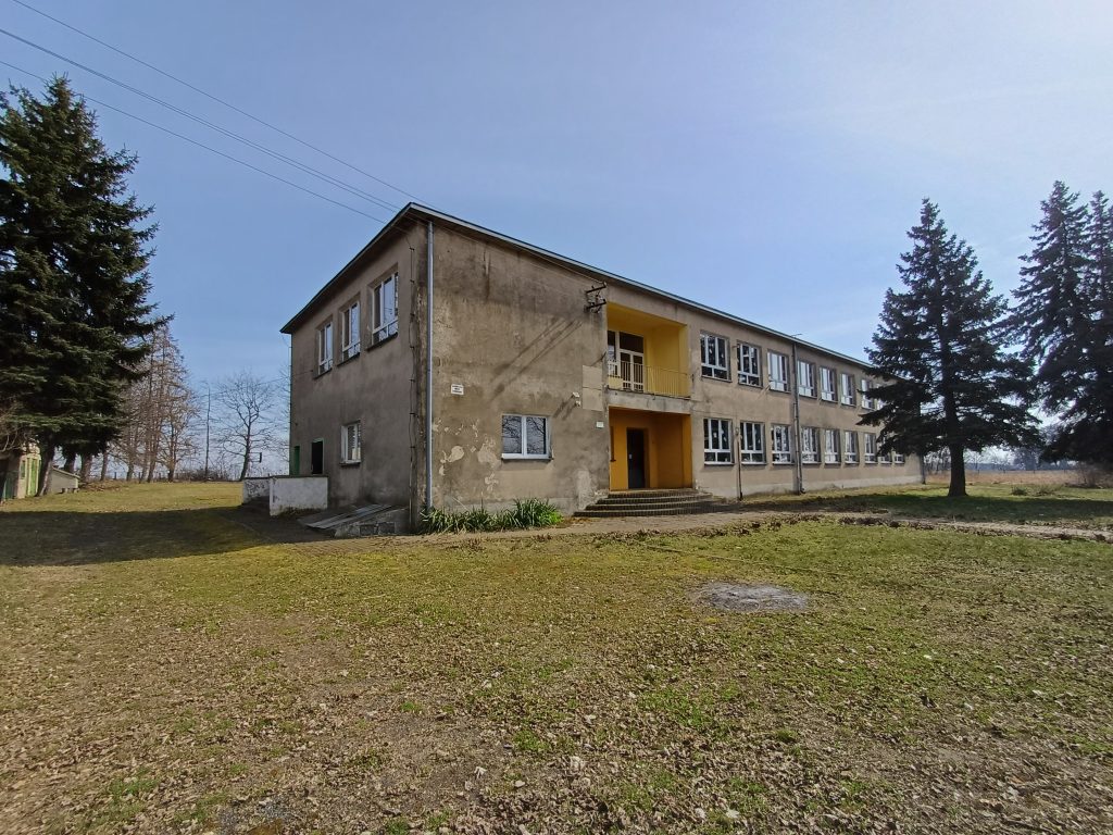 Działka zabudowana budynkiem murowanym, 2 kondygnacyjnym, podpiwniczonym o powierzchni zabudowy 582 m2. W skład budynku wchodzą: sale lekcyjne, pokój socjalny, pokoje inne, sala gimnastyczna, sanitariaty, biblioteka, świetlica, kuchnia, stołówka, korytarze i piwnica. W budynku na bieżąco prowadzone były prace modernizacyjne i remontowe. Budynek w przeszłości wykorzystywany jako szkoła, obecnie nieużytkowany. Budynek pozbawiony wyposażenia.