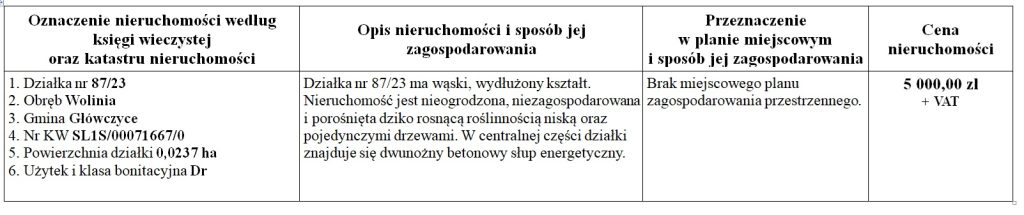 Szczegółowe informacje o przedmiocie sprzedaży można uzyskać w siedzibie Urzędu Gminy Główczyce, ul. Kościuszki 8, tel. (59) 811-49-60.