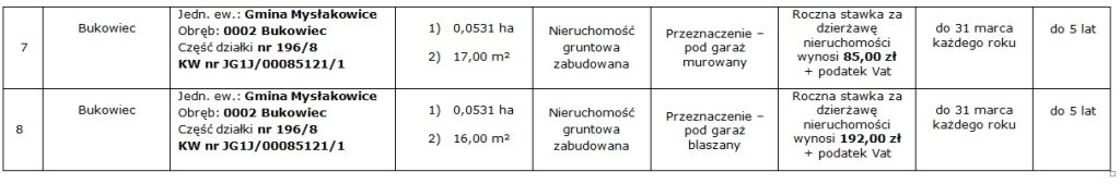 Wójt Gminy Mysłakowice podaje do publicznej wiadomości wykaz nieruchomości przeznaczonych do dzierżawy:
