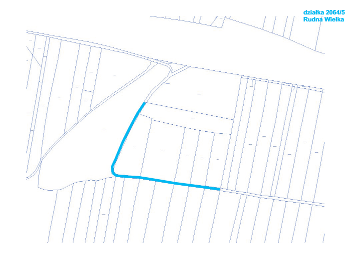 - Opis nieruchomości: Będąca przedmiotem wykazu nieruchomość gruntowa, oznaczona numerem 2064/5 o pow. 0,0593 ha, położona w Rudnej Wielkiej. W bezpośrednim sąsiedztwie, znajdują się grunty zabudowane budynkami o funkcji przemysłowej: produkcyjne, magazynowe, handlowe (część południowa