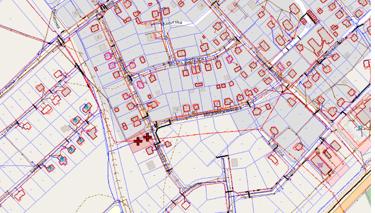 Działki do sprzedaży oznaczone są krzyżykiem