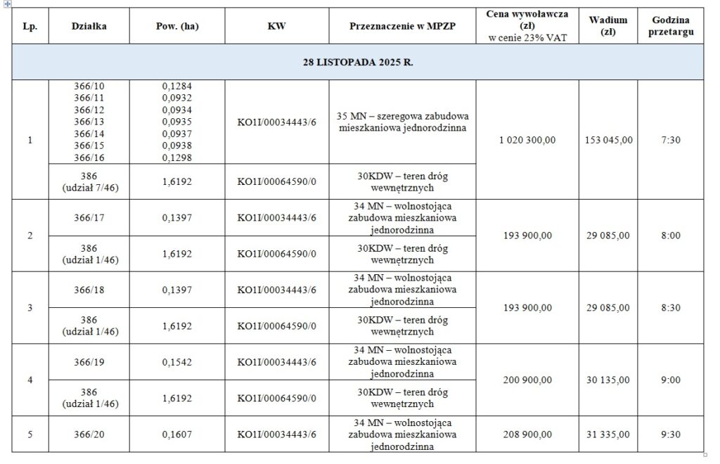 że na tablicy ogłoszeń w siedzibie Starostwa Powiatowego w Szczecinku przy ulicy Warcisława IV 16, na stronie internetowej www.powiat.szczecinek.pl oraz w Biuletynie Informacji Publicznej Starostwa Powiatowego w Szczecinku zostały podane do publicznej wiadomości ogłoszenia o organizowanych pierwszych przetargach ustnych nieograniczonych na sprzedaż prawa własności nieruchomości niezabudowanych stanowiących własność Powiatu Szczecineckiego położonych w obrębie ewidencyjnym nr 0027 Świątki miasta Szczecinek