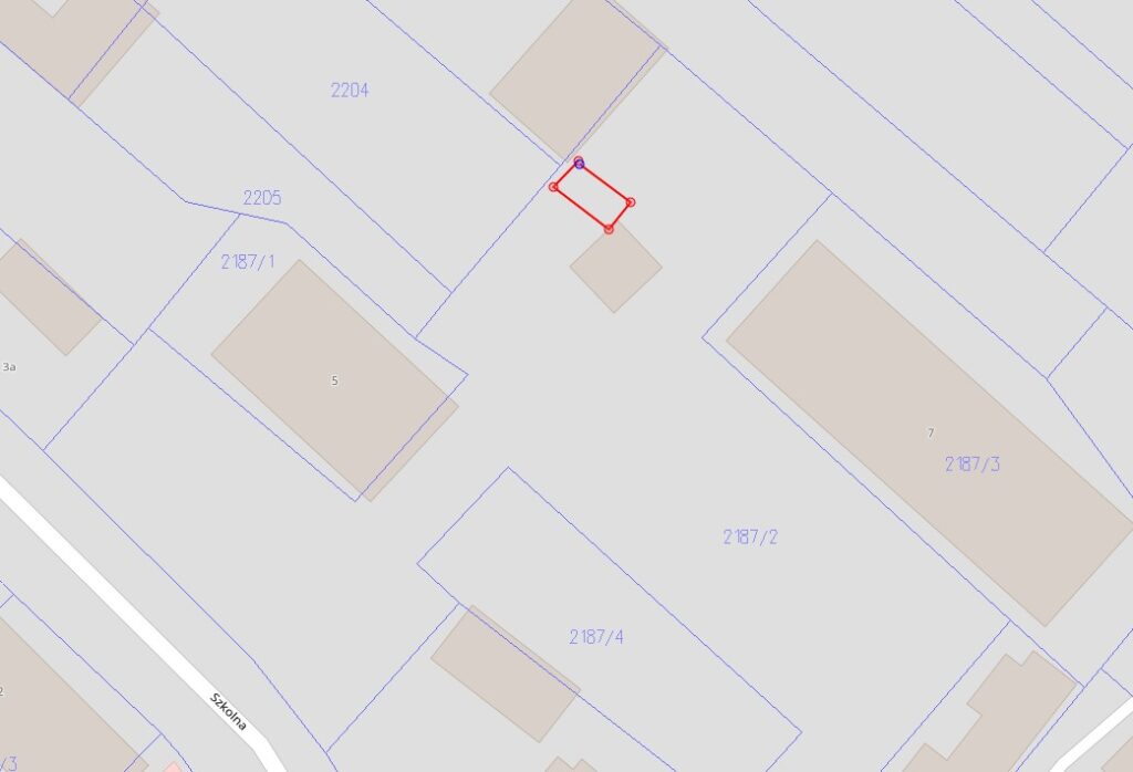 Działki nr 2187/2 położona jest w obszarze zwartej zabudowy przy ul. Szkolnej, stanowiącej drogę powiatową o nawierzchni asfaltowej.