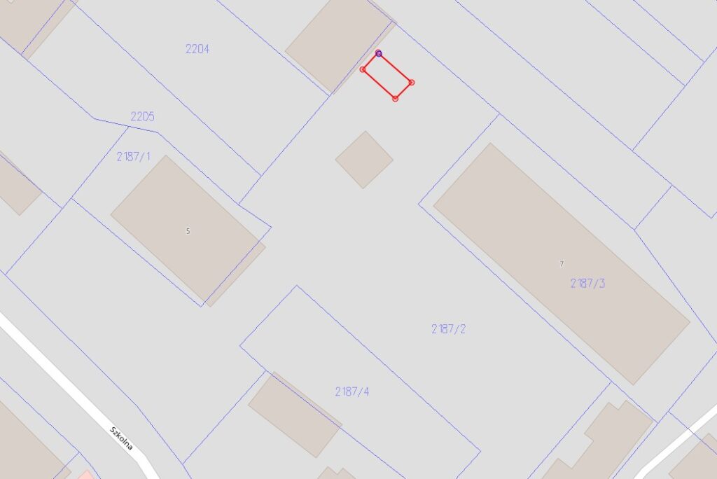 Nr geodezyjny 2187/2 o powierzchni 2342 m2 oznaczona w ewidencji gruntów jako Br – grunty rolne. Obręb ewidencyjny 0054 Knyszyn, gmina Knyszyn. Księga wieczysta Nr BI1B/00003356/9 (Sąd Rejonowy w Białymstoku ul. Mickiewicza 103, 15-950 Białystok IX Wydział Ksiąg Wieczystych).